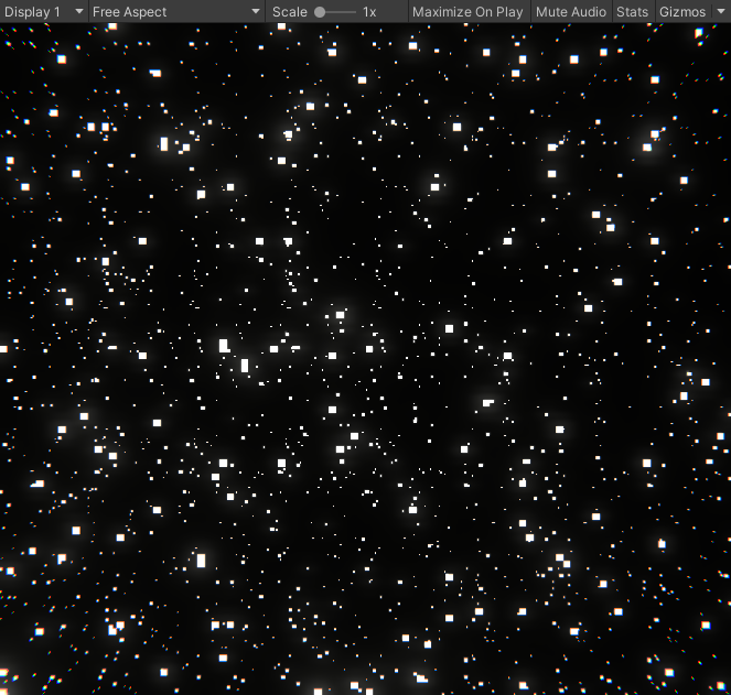 6. At this point its looking like a nice starfield, but I wasnt 100% satisfied with it because it was lacking any movement/life. So I added in a sparkle element to the star drawing function, which randomly flickers the stars on each layer. Making the ones far off sparkle faster than the closer ones really made the whole effect come together.