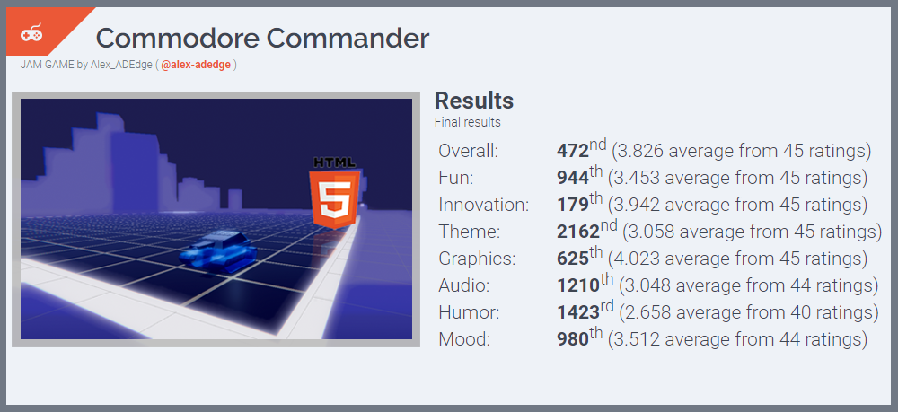 A final note on the game dev side of things, Ludum Dare results came out this week as well, with the results for my game (Commodore Commander):