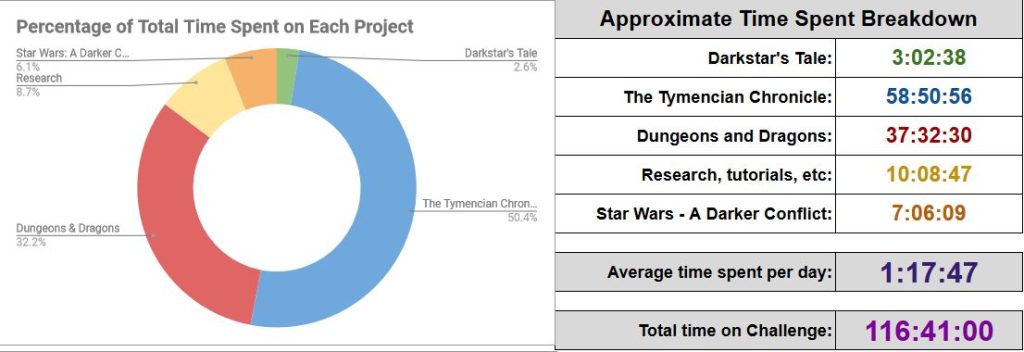 I have been working constantly on Trehaug work for D&D, as well as finishing chapter 12 of the Chronicle.